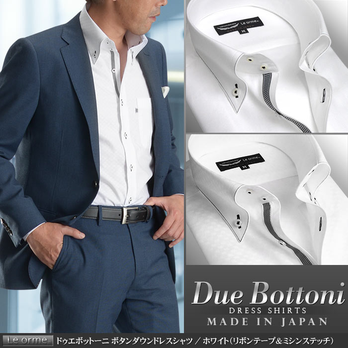 ドゥエボットーニ ボタンダウンドレスシャツ/ホワイト(リボンテープ&ミシンステッチ)