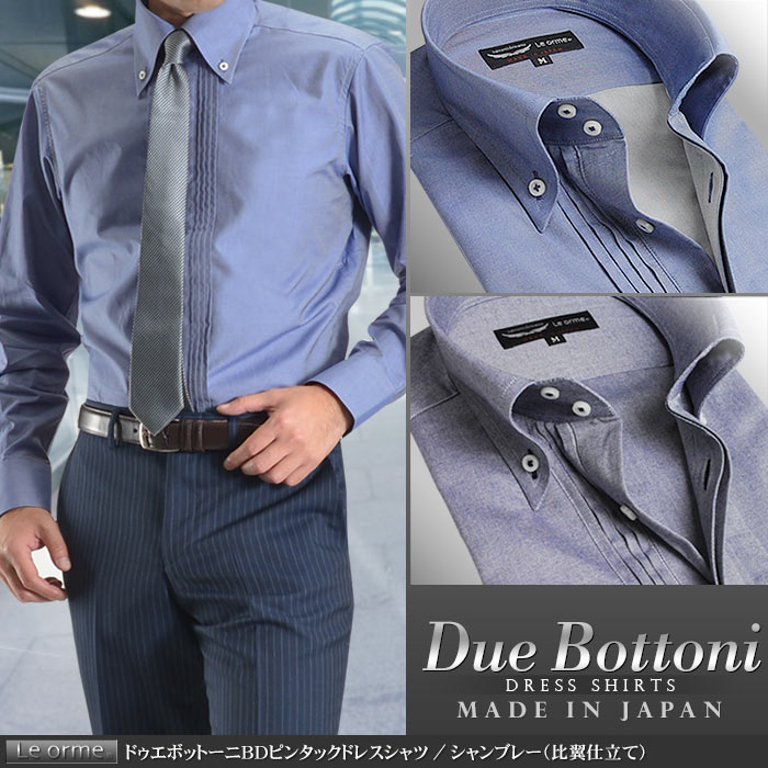 ドゥエボットーニ ボタンダウンピンタックドレスシャツ/シャンブレーブルーグレー(比翼仕立て)