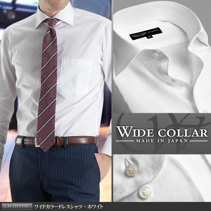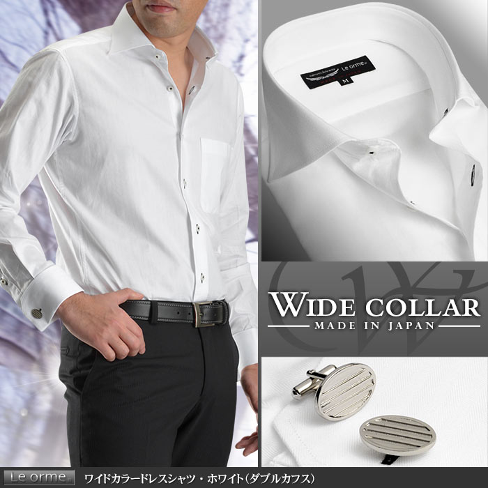 ワイドカラードレスシャツ・ホワイト(ダブルカフス)
