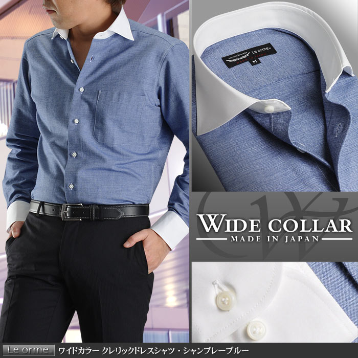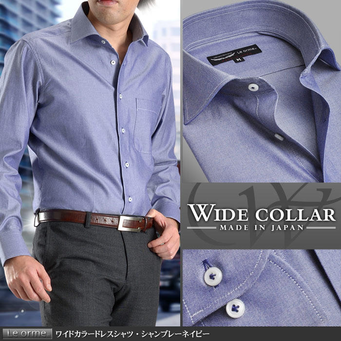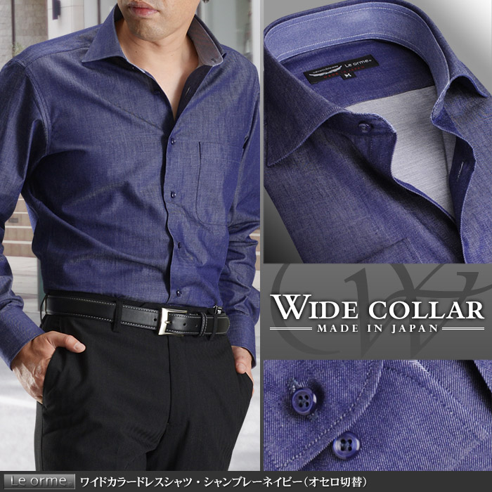ワイドカラードレスシャツ/シャンブレーネイビー