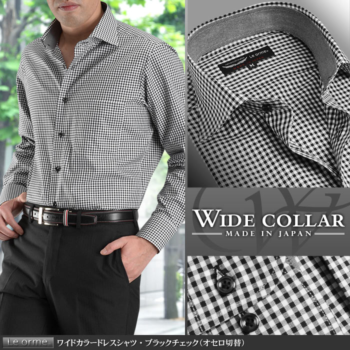 ワイドカラードレスシャツ・ブラックチェック(オセロ切替)