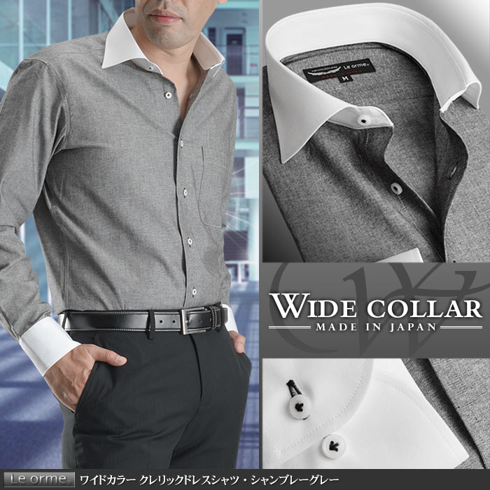 ワイドカラー クレリックドレスシャツ・シャンブレーグレー