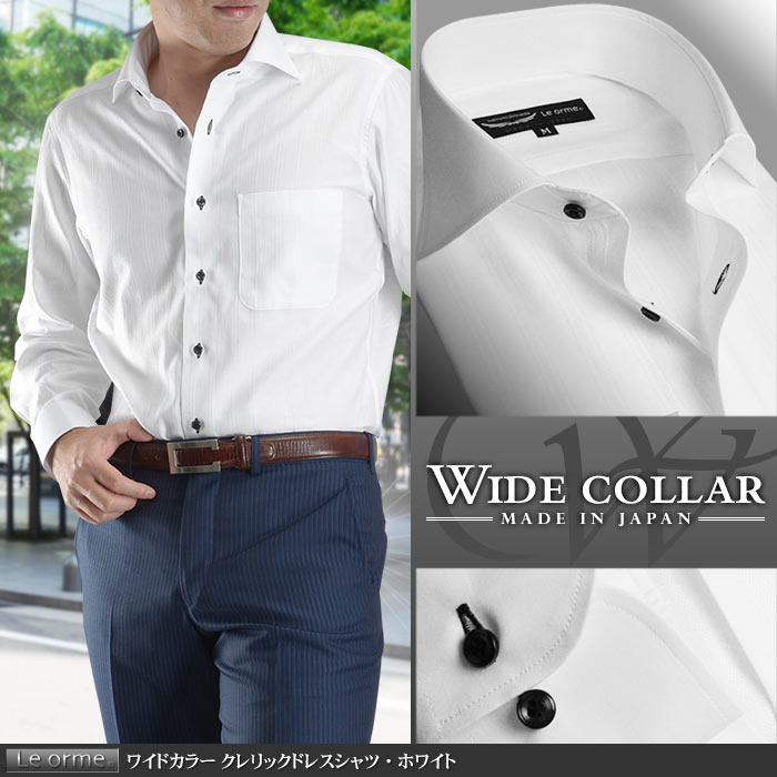 ワイドカラー クレリックドレスシャツ・ホワイト