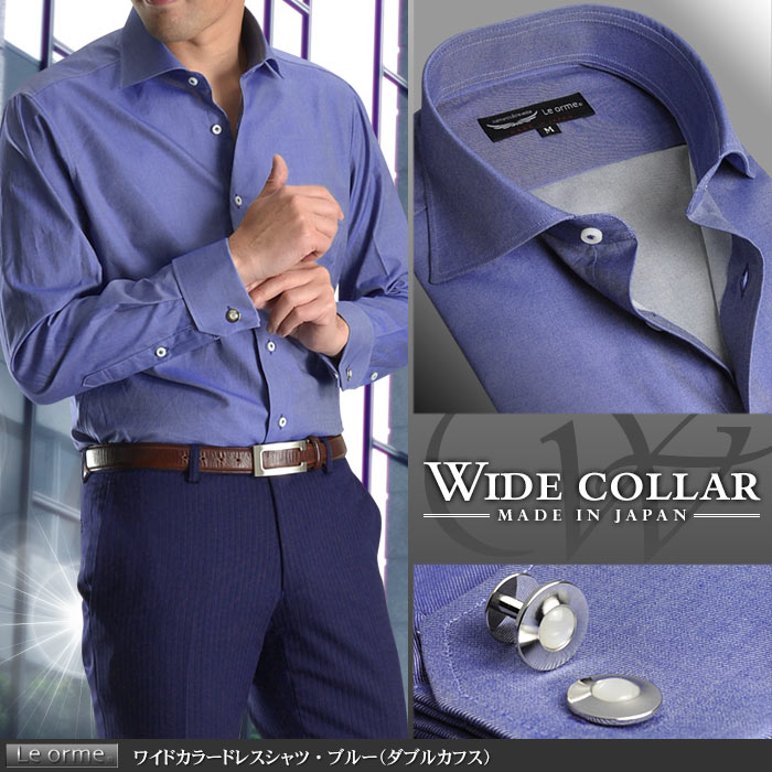 ワイドカラードレスシャツ・ブルー(ダブルカフス)
